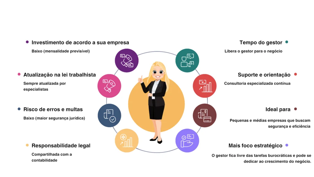 Esse modelo reduz custos internos, evita erros legais e garante mais segurança jurídica, sendo ideal para empresas da região que desejam foco no crescimento e conformidade com a legislação.